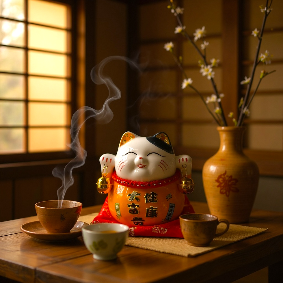 Small Ceramic Fortune Cat Coin Bank with Cushion