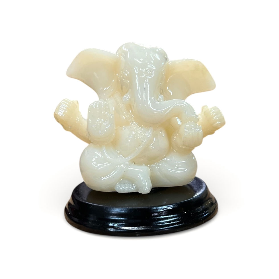 3” Lord Ganesha Figurine on Wood Base, Shiny Ivory Color